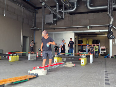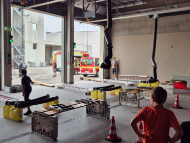 Ein weiteres Highlight war der Hindernisparcours, der aus unterschiedlichen Feuerwehrgerätschaften aufgebaut war. In drei Gruppen traten die Kinder und Jugendlichen gegeneinander an, um durch den Parcours zu manövrieren und dabei möglichst viel Wasser zu transportieren. Der Parcours stellte Geschicklichkeit und Teamarbeit auf die Probe, da es galt, Wasser durch verschiedene Hindernisse zu schleusen, ohne einen Tropfen zu verlieren. Ob Slalomlaufen durch Leitkegel, Kriechen unter Saugschläuchen, Klettern über gespannte Leinen oder die Abkühlung durch ein Hydroschild kurz vor dem Ziel – der Parcours sorgte für jede Menge Spaß und einen spannenden Wettkampf zwischen den Gruppen.