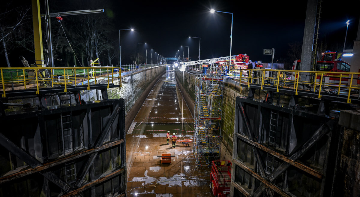 Person abgestürzt – Feuerwehr übt Personenrettung in der Schleuse Rothenfels