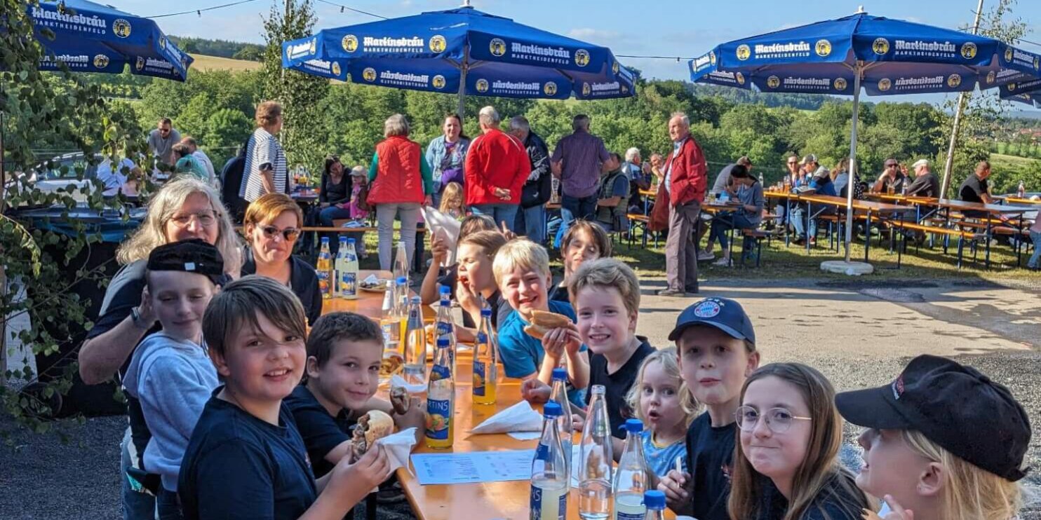 Die Kinder und Betreuer machten sich am Montagnachmittag auf den Weg Richtung Dreschhalle in Glasofen auf das Feuerwehrfest anlässlich des 150-jährigen Jubiläums unserer Stadtteilwehr.