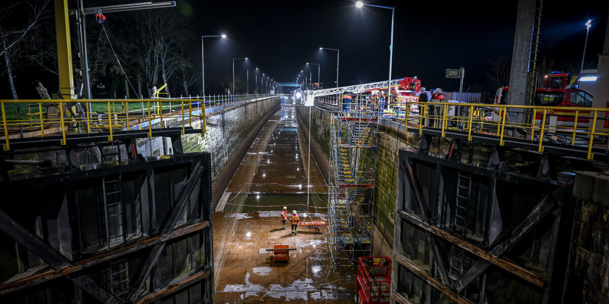 Aufgrund der jährlichen Wartungsarbeiten ist die Schleuse Rothenfels derzeit trockengelegt. Vergangenen Dienstag nutzte die Feuerwehr Marktheidenfeld diese Gelegenheit und übte dort den Ernstfall.