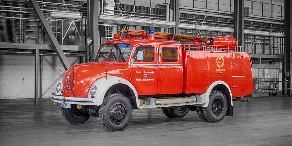 Das historische Tanklöschfahrzeug „TLF 16“ ist neben den zahlreichen historischen Spritzenanhängern und Armaturen eines der größten Schätze der Freiwilligen Feuerwehr Marktheidenfeld.